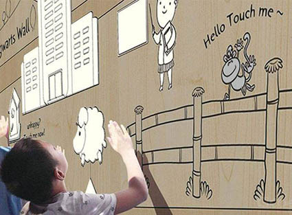 霍格沃茲墻是多媒體互動投影鐘具有魔法的一面互動展示墻,通過手指觸碰墻面上,影像就會如魔法般一樣出現(xiàn),不觸碰時就會消失。